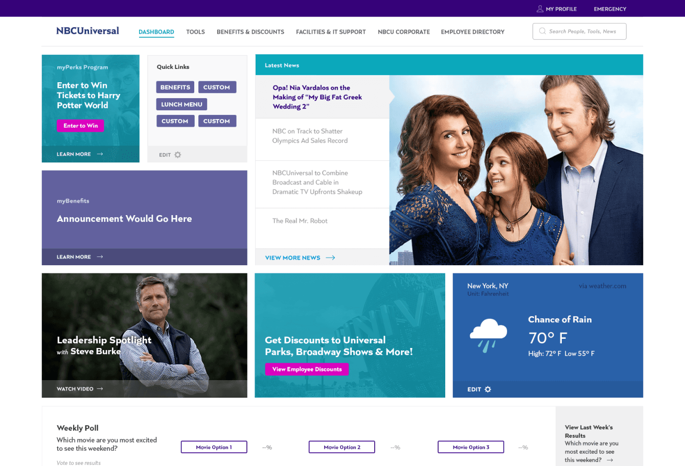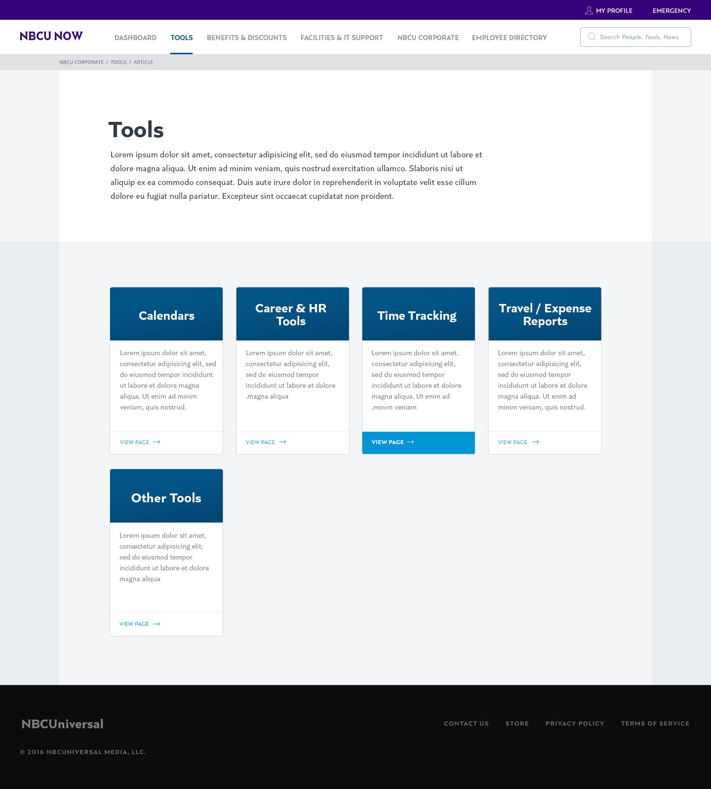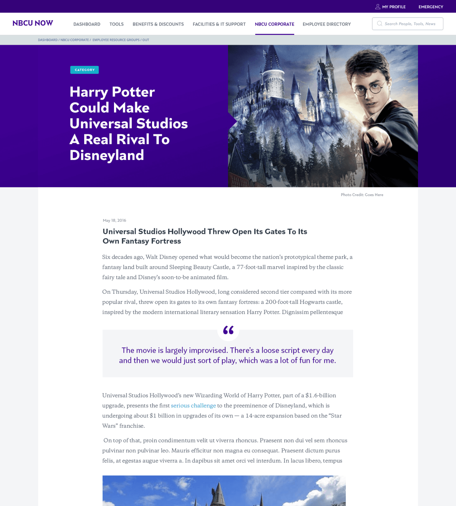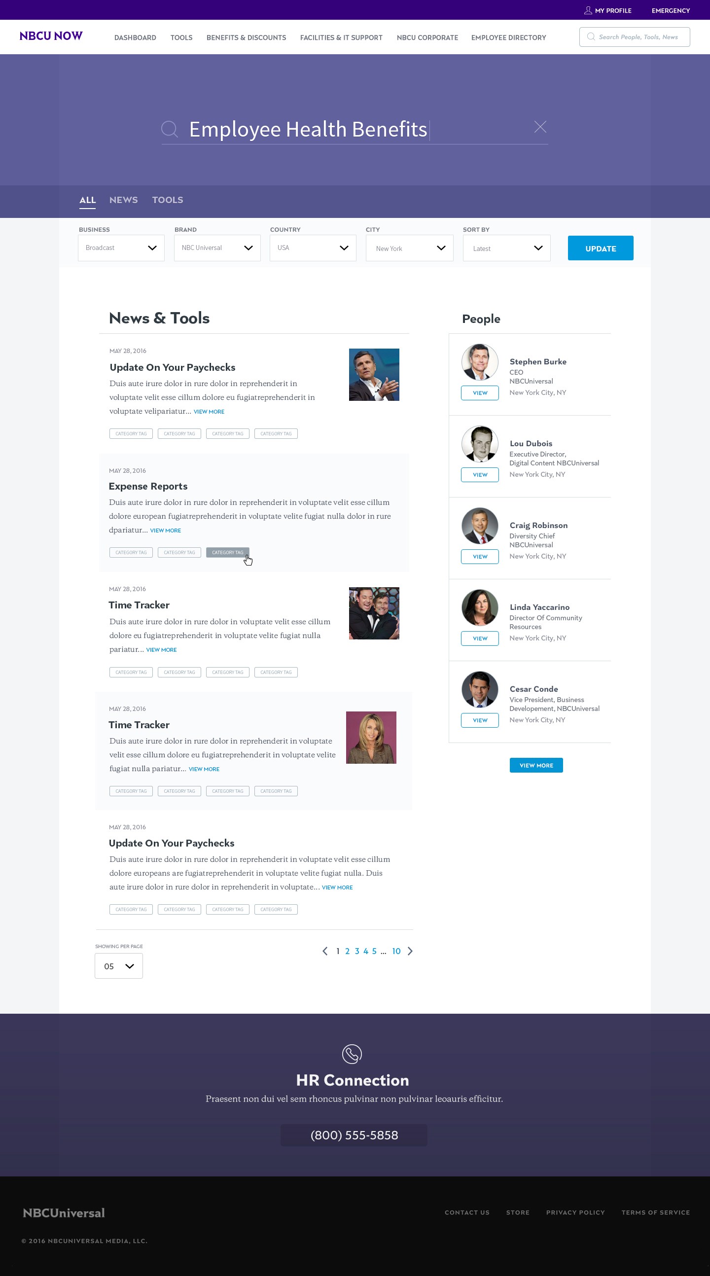 The Solution: NBCU Now: A multifunctional internal professional network featuring customizable news feeds, comprehensive employee directory, intuitive search capabilities, and scalable content architecture supporting 65,000+ unique items across global offices in a responsive, mobile-first design system.